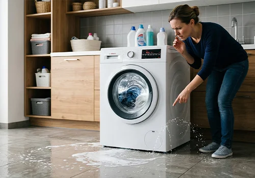 Sale agua por algún lugar de la lavadora
